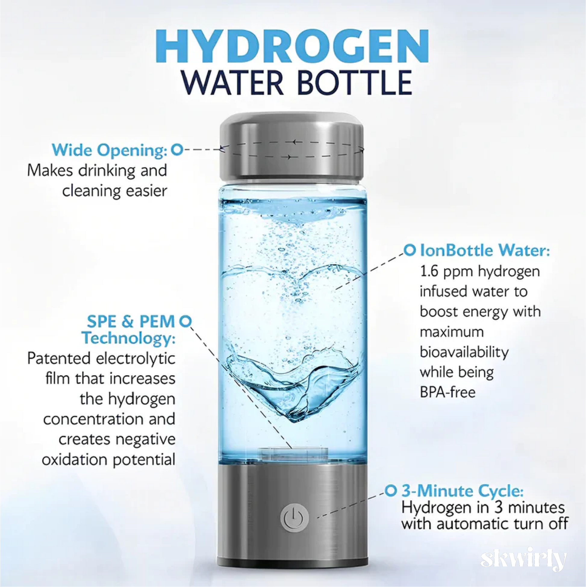 Unlock the power of hydrogen-rich water by simply filling up the bottle, pressing the power button, and watching as it infuses hydrogen ions in minutes, transforming your water into a health-boosting powerhouse.